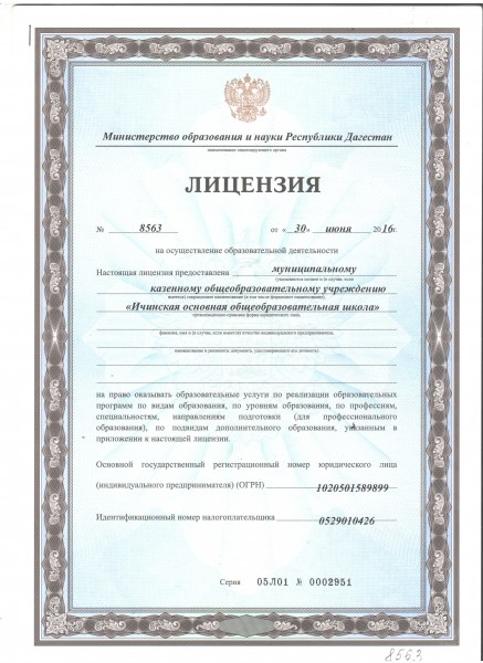 Полное наименование образовательной организации* Муниципальное казенное общеобразовательное учреждение "Ичинская основная общеобразовательная школа"