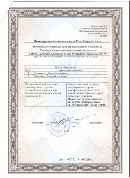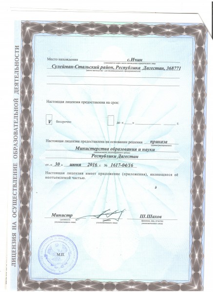 Адрес местонахождения образовательной организации* Республика Дагестан, Сулейман-Стальский район, с.Ичин